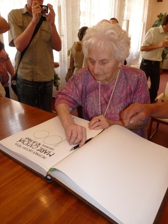 Paní Cahová je na svůj úctyhodný věk velice vitální a mnohé mladší ročníky strčí do kapsy. Stejně jako loni se oslavenkyně zapsala do pamětní knihy, i letos bez brýlí, a došlo dokonce na tanec! Na oslavě zahrál Otto Hasoň na housle za doprovodu Naděždy Burianové (harmonika).