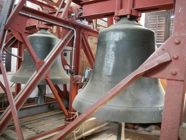 Budete procházet kolem šestice zvonů, z nichž ten největší (2 180 kg) nese samozřejmě jméno sv. Mikuláše. Další zvony mají jména sv. Cyrila a Metoděje, Panny Marie, sv. Josefa, sv. Františka a tím posledním a nejmenším je smutný, ale bohužel nezbytný umíráček.