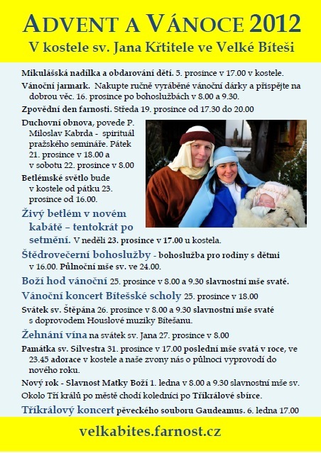 Celou řadu akcí nabídne závěr roku v kostele sv. Jana Křtitele. Lákadlem bude Živý betlém v novém kabátě, slavnostní bohoslužby, ale i několik koncertů či vánoční jarmark. Všechny tyto události dají obyvatelům Velké Bíteše příležitost být spolu.