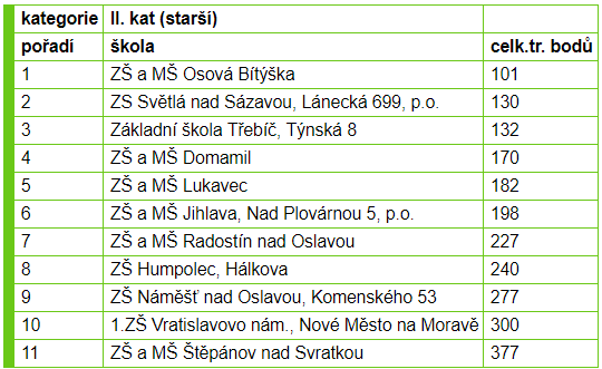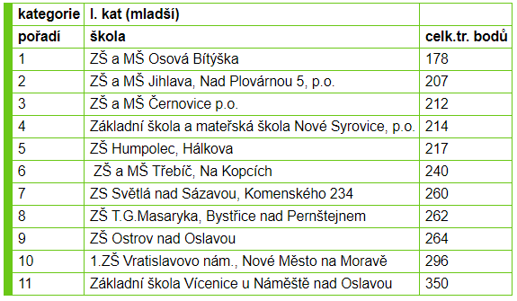 Konečné výsledky krajského kola Dopravní soutěže mladých cyklistů v Moravských Budějovicích: